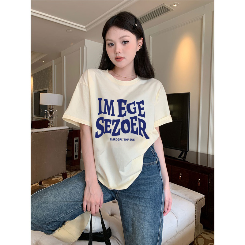 Detail XIAOZHAINV Korean Style Kaos Atasan Wanita Blue Letters Pattern Lengan Pendek A0778