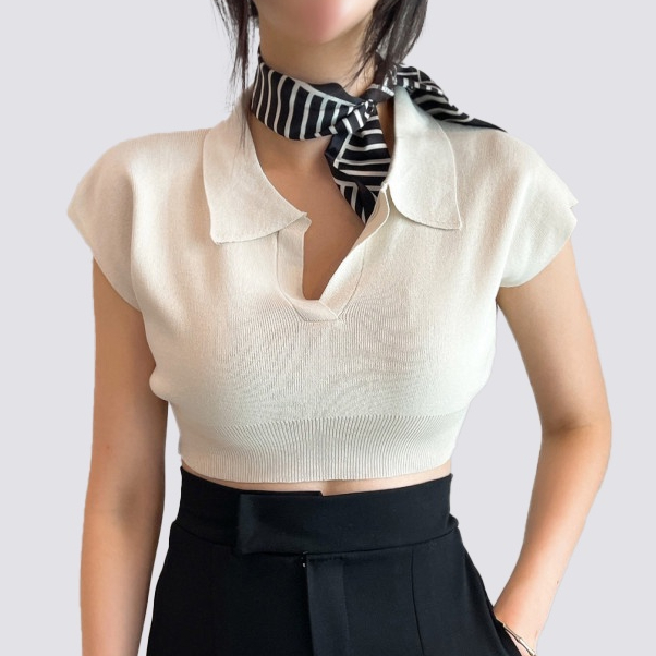 Detail XIAOZHAINV Korean Vneck Crop Top Blouse Polo Shirt Atasan Wanita