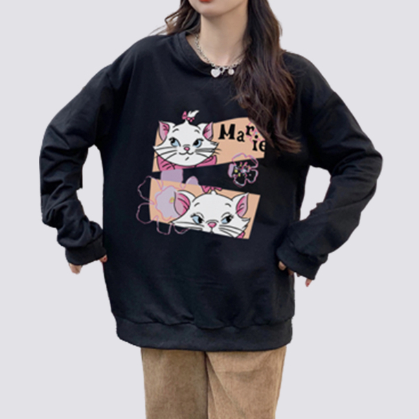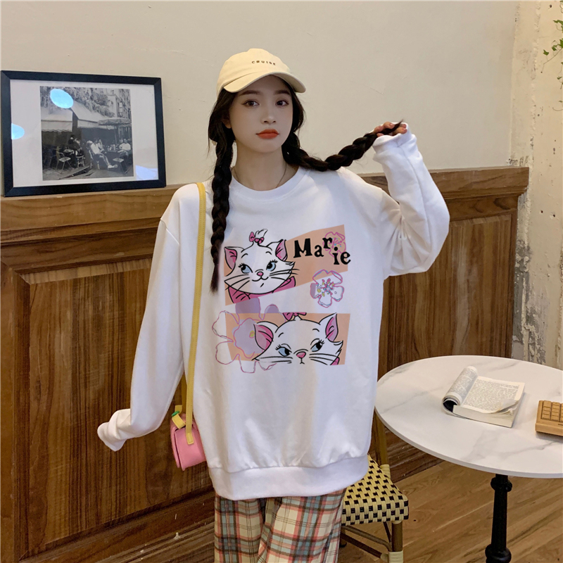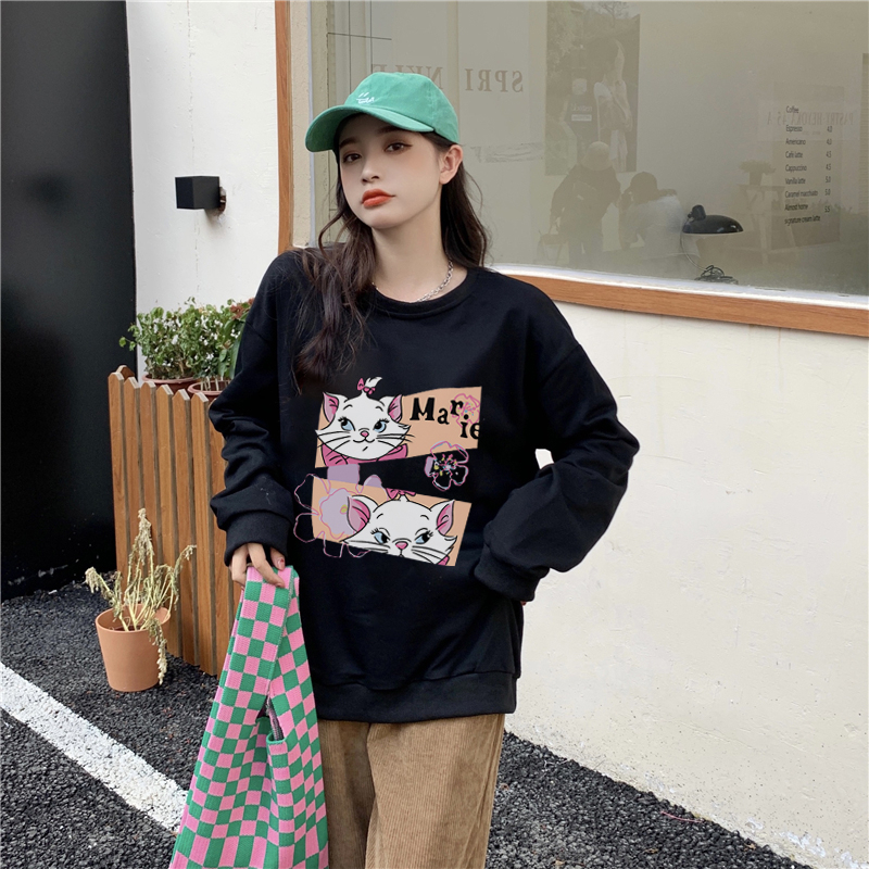 Detail XiaoZhaiNv Sweater Oversized Wanita Cat Anime Pattern Lengan Panjang Korean Style