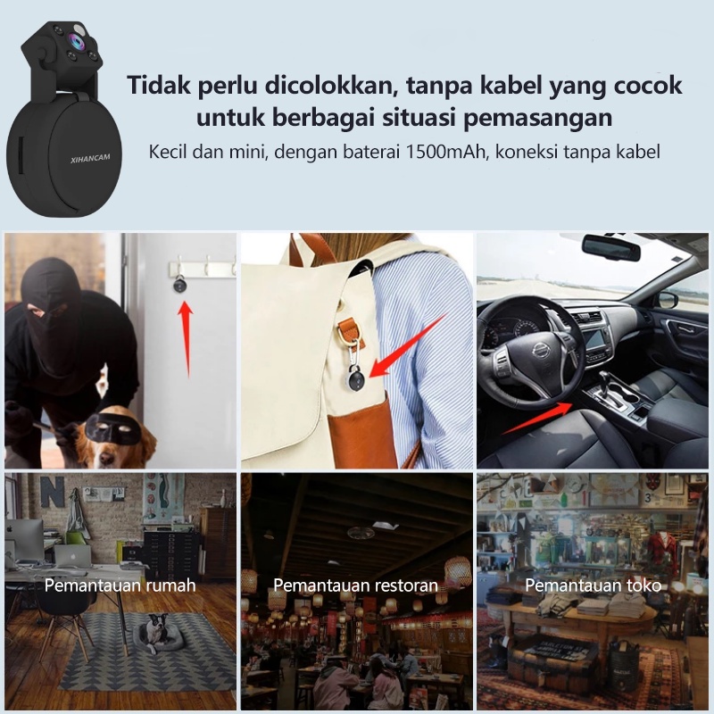 Detail XIHANCAM CCTV Mini Baterai Spy Cam Wifi CCTV Kecil Spy Kamera Mini Tersembunyi Tanpa Kabel buat HP