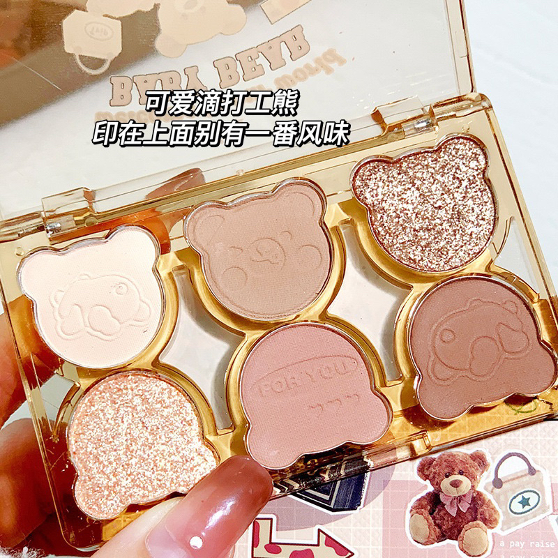 Detail XIXI bear EYE shadow 6color Boneka Eyeshadow Kosmetik Make Up Natural Pigmented Tahan Lama