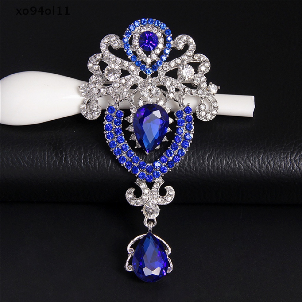 Detail Xo Perak Bunga Besar Bros Pengantin Berlian Imitasi Kristal Diamante Pernikahan Broach Pin OL