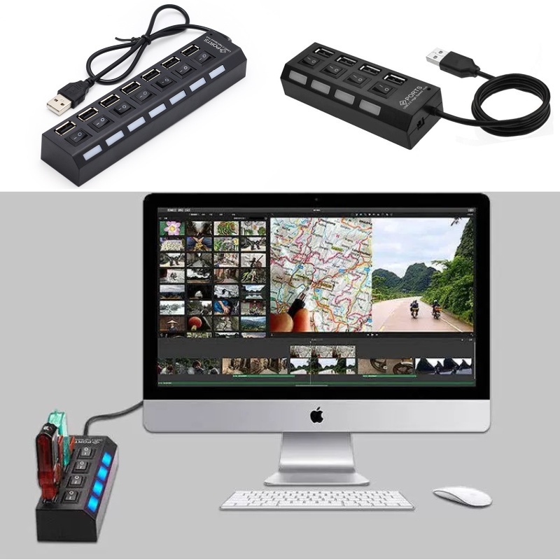 π [XOQ] USB HUB 4 PORT DAN 7 PORT OUTPUT ON OFF SAKLAR LAMPU LED USB 2.0 DATA READER