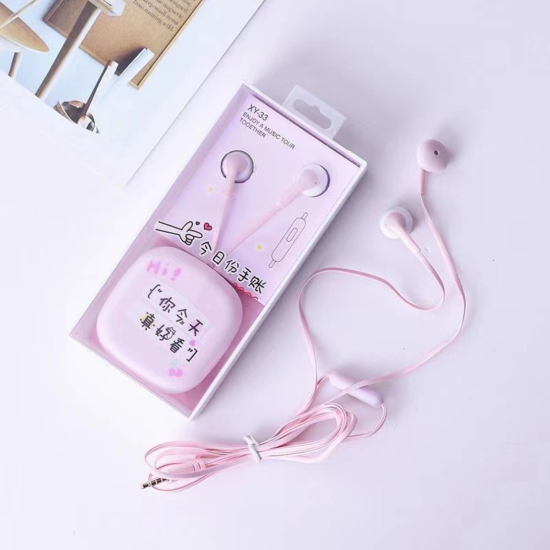 Detail [XY 33 ] Set Headset Earphone motif sweet lovely lisan so cute + Wadah penyimpanan Earphone Motif karakter