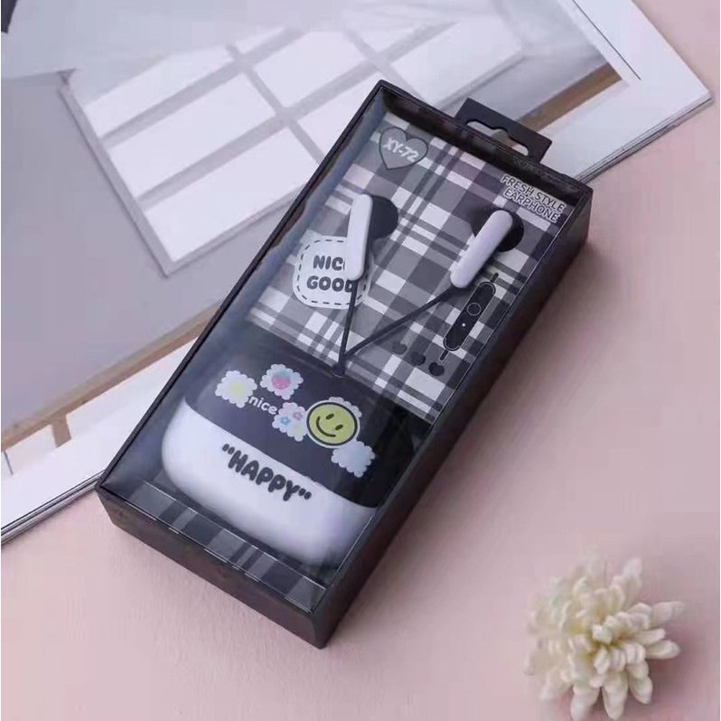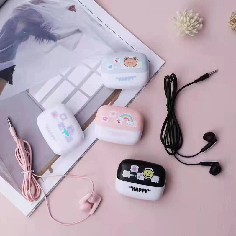 Set Headset Earphone + wadah penyimpanannya yang bermotif Fresh style dengan kode XY 72