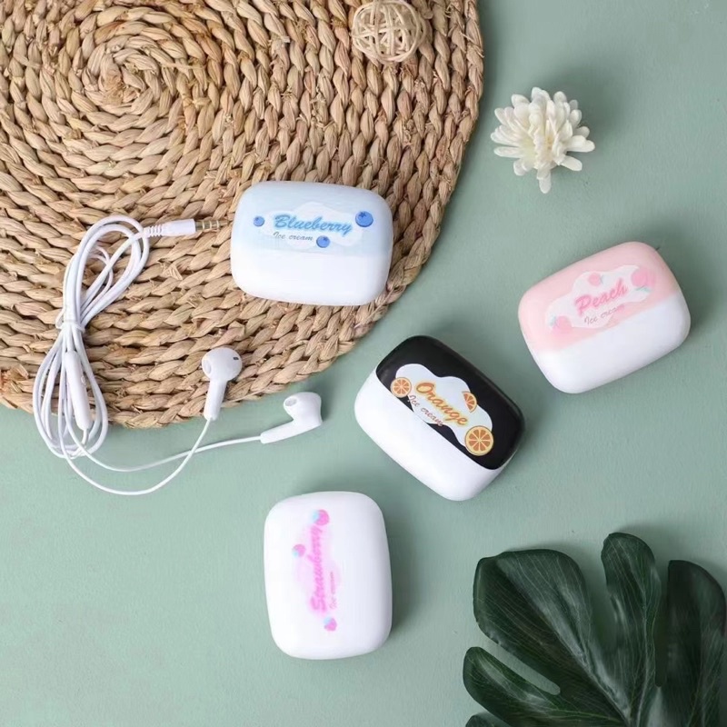 Set Headset Earphone + wadah penyimpanannya yang bermotif ice cream daily dengan kode XY 73