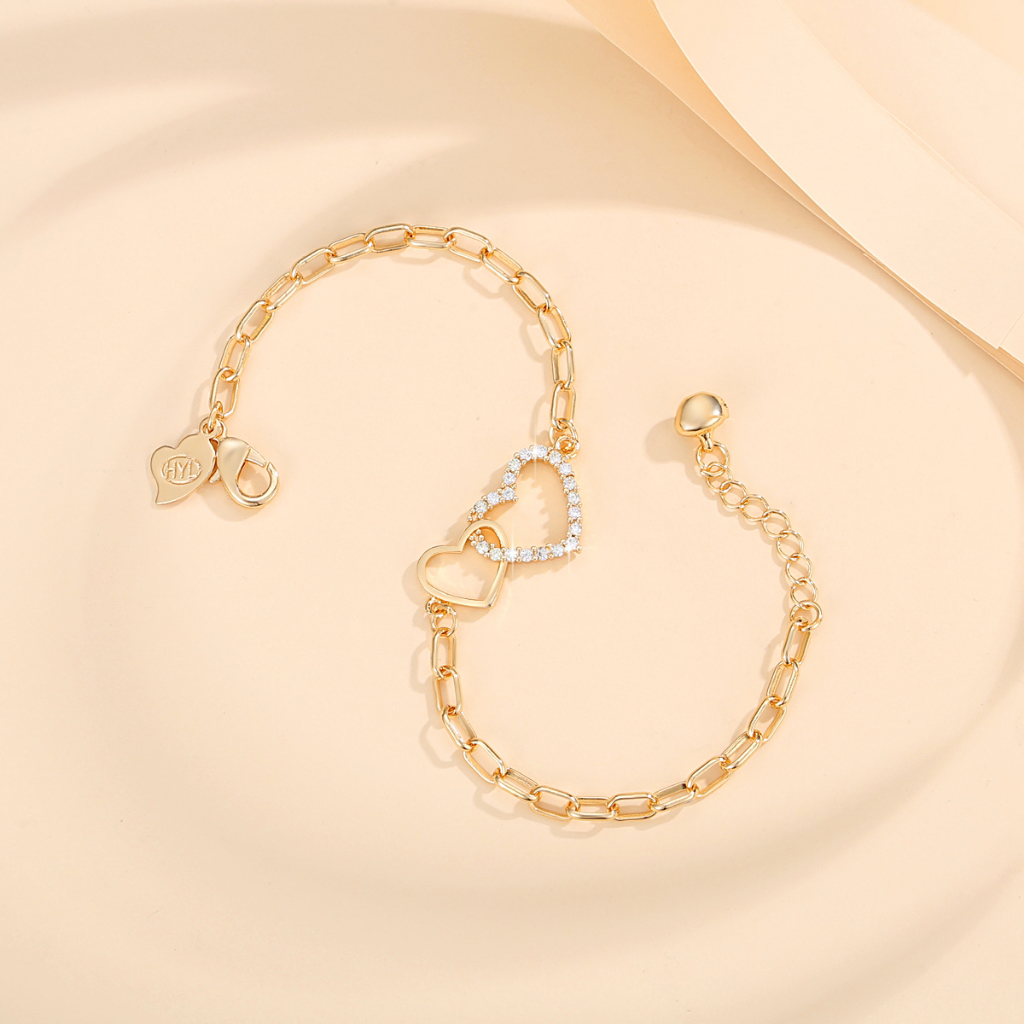Aksesoris Fashion > Gelang Tangan & Bangle > Y100 【Barang spot】Gelang Hati Titanium Bentuk Gelang Titanium Wanita Anti Karat Mewah Gelang Wanita Rantai Perhiasan