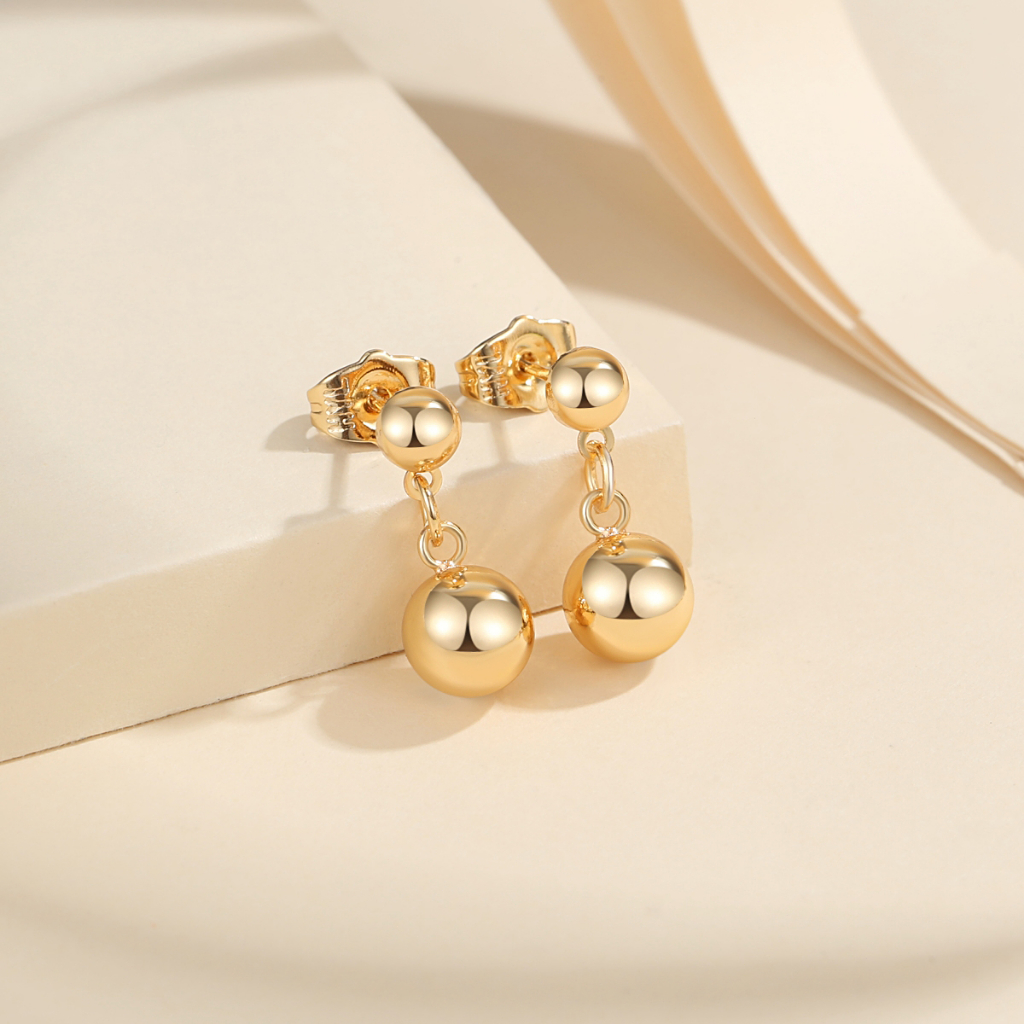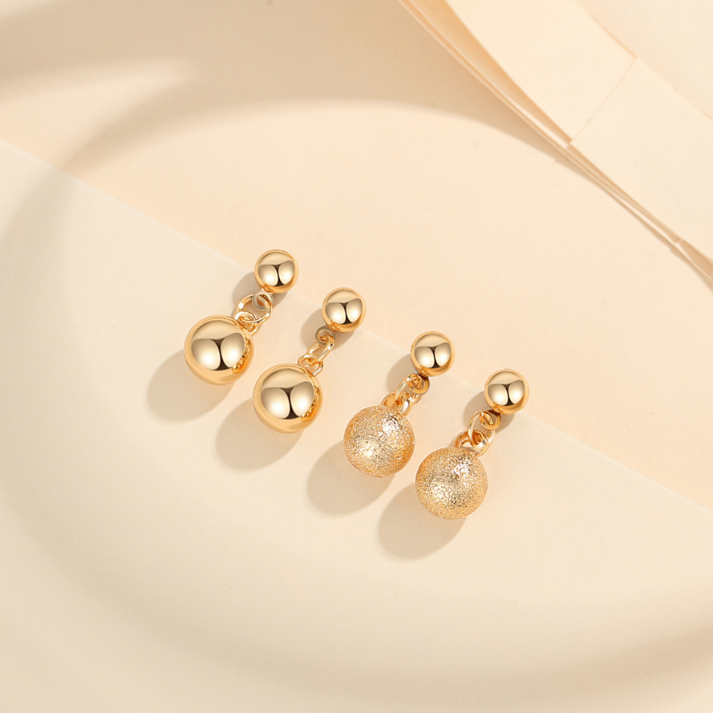Detail Y152 【Barang spot】Anting Gantung Bola Kerawang Lapis Emas Anting Wanita Bola Lapis Emas 18k Fashion Perhiasan