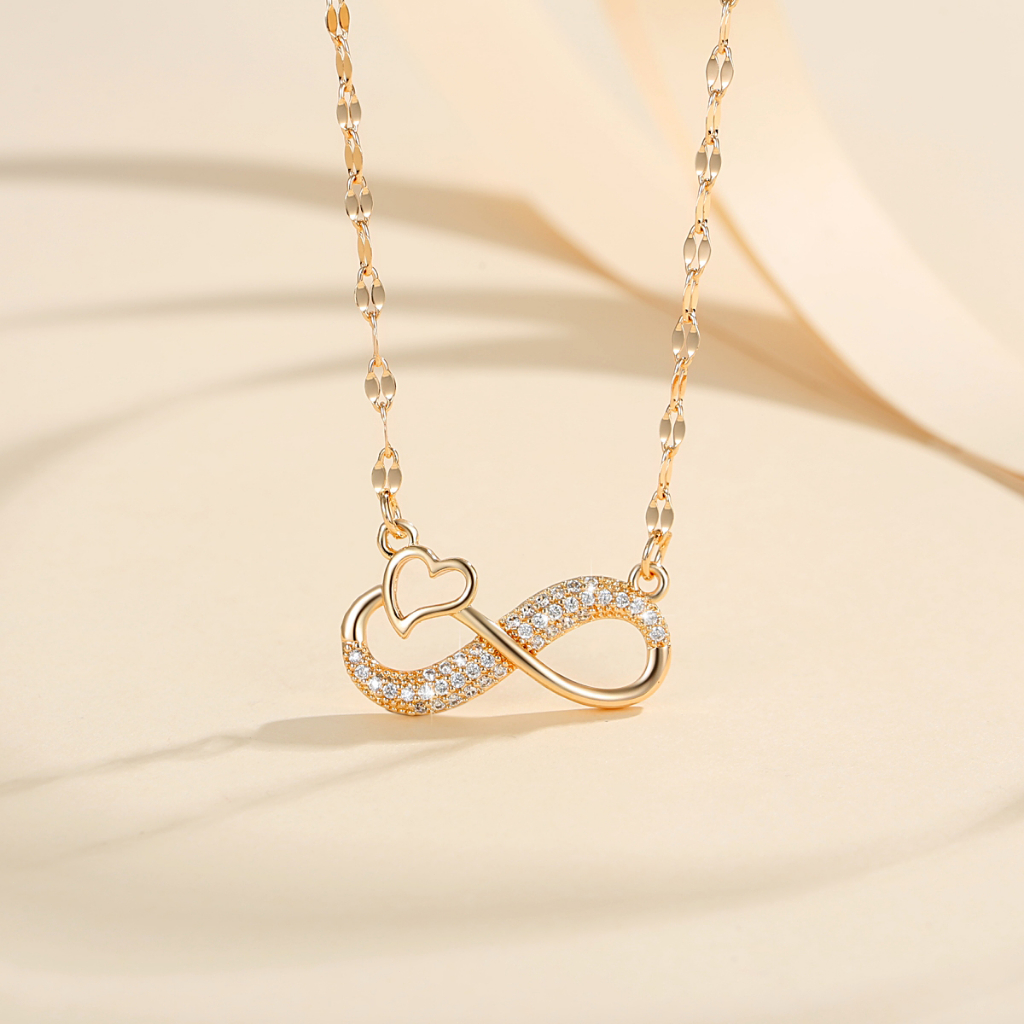 Detail Y153 【Barang spot】Kalung Wanita Titanium Lapis Emas Dewasa Rantai Lapis Emas Kalung Titanium Wanita Liontin Infinity