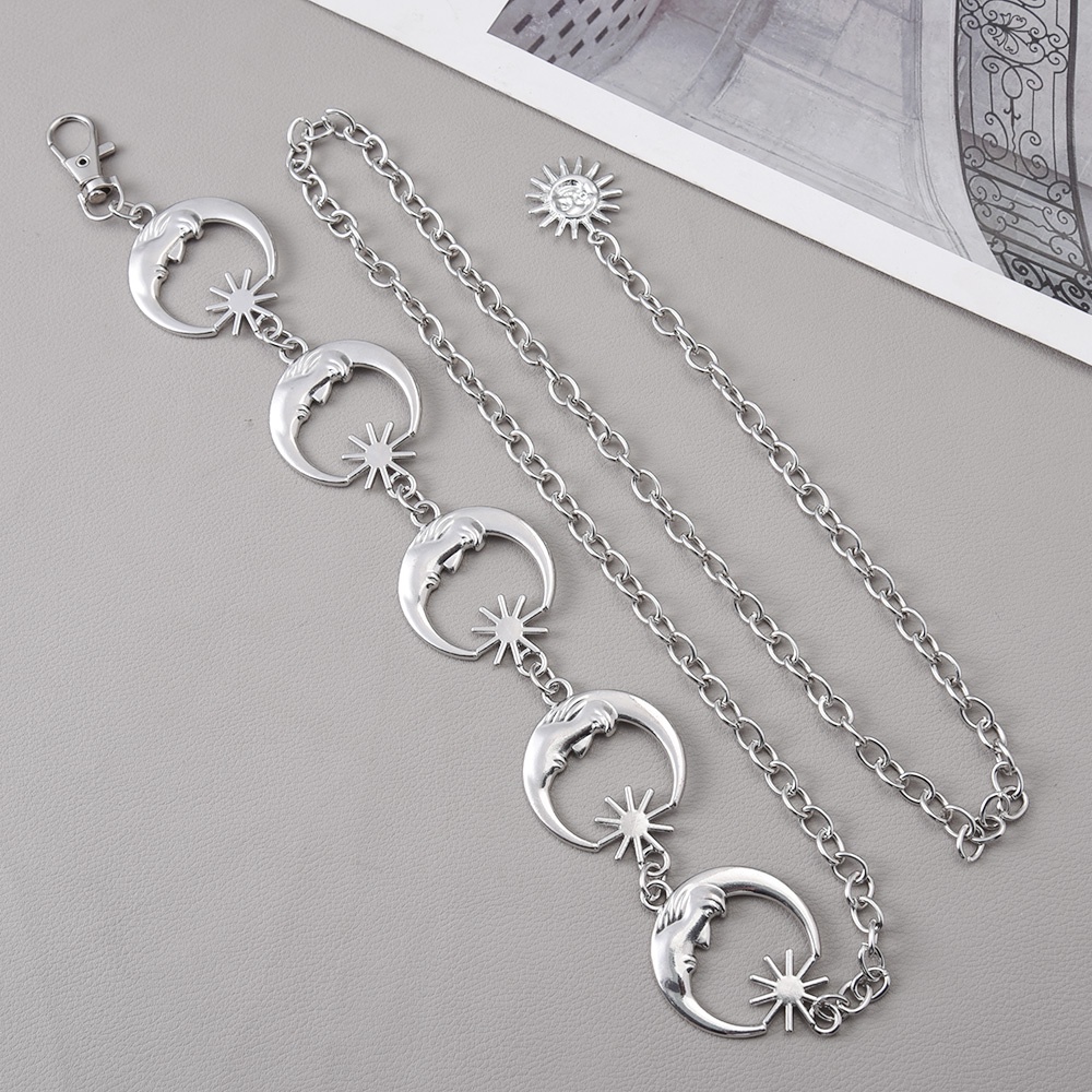 Aksesoris Fashion > Aksesoris Fashion Lainnya > Y2k Gothic Bulan Bintang Rantai Pinggang Retro Punk Warna Perak Sabuk Vintage Sempit Logam Rantai Perut Aksesoris Fashion Wanita