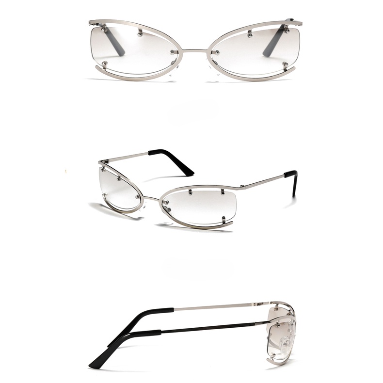 Detail Y2k Kacamata Half Frame Tembus Metal Mata Kucing Sunglasses Female