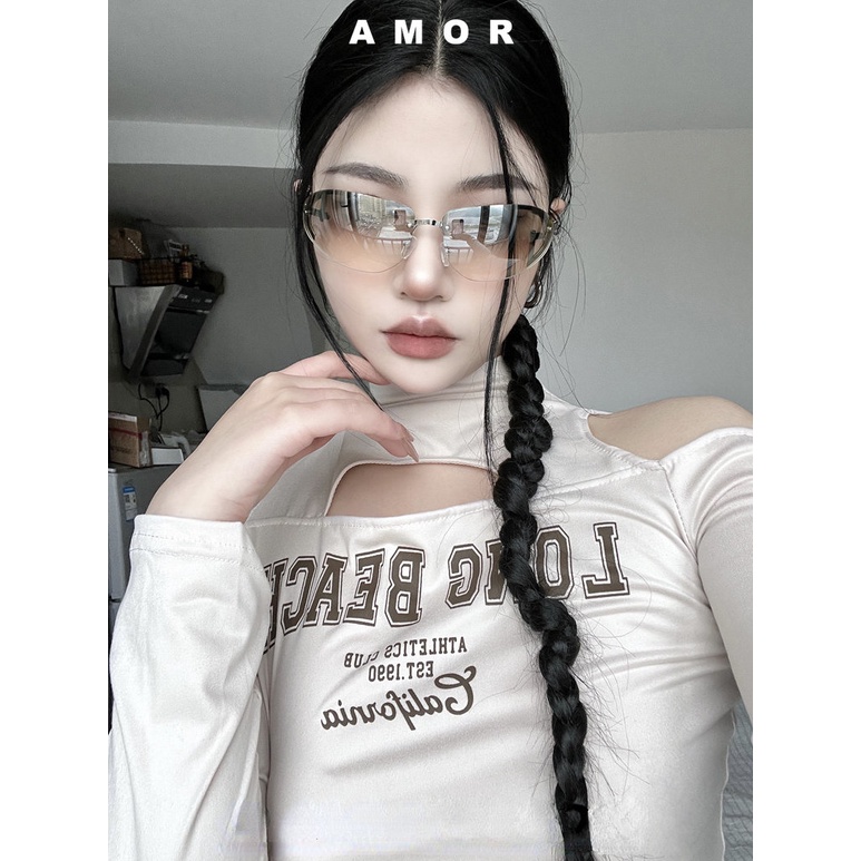 Detail Y2k Kacamata Hitam Metal Mercury Technology style photograph Pria Dan Wanita