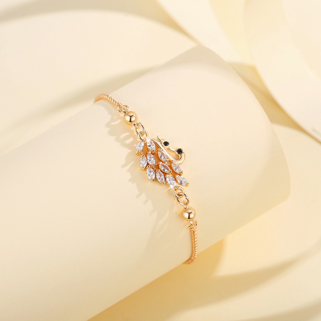Detail Y745 【Barang spot】 Korea Berlian Swan Pesona Gelang untuk Wanita Gelang Berlian Imitasi Emas Fashion