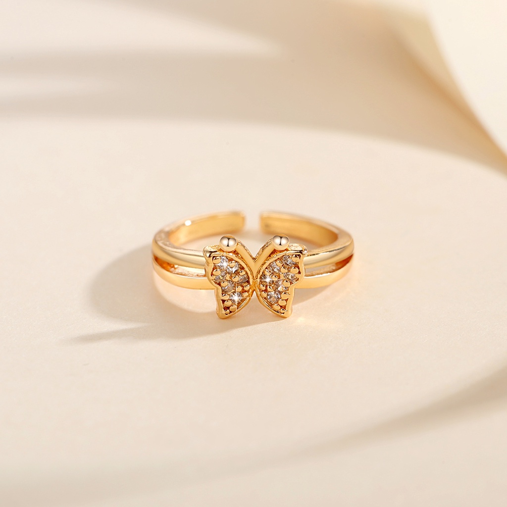 Detail Y871 【COD】Kupu-Kupu Cincin Anak Titanium Berlian Fashion Perhiasan Lapis Emas Anti Karat