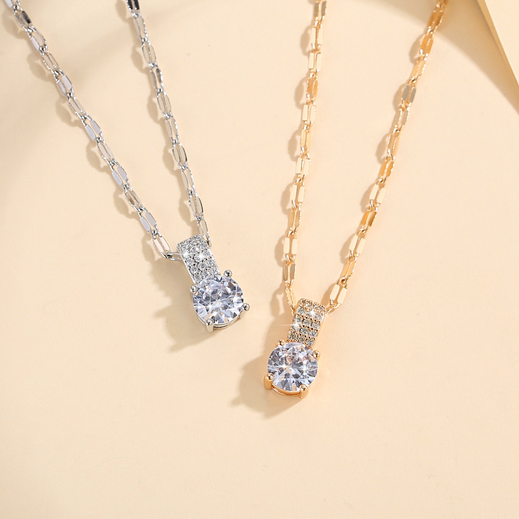 Detail Y904 【COD】Kalung Emas/PerakTitanium Wanita Anti Karat Korea Kalung Permata Liontin Penuh Berlian Perhiasan