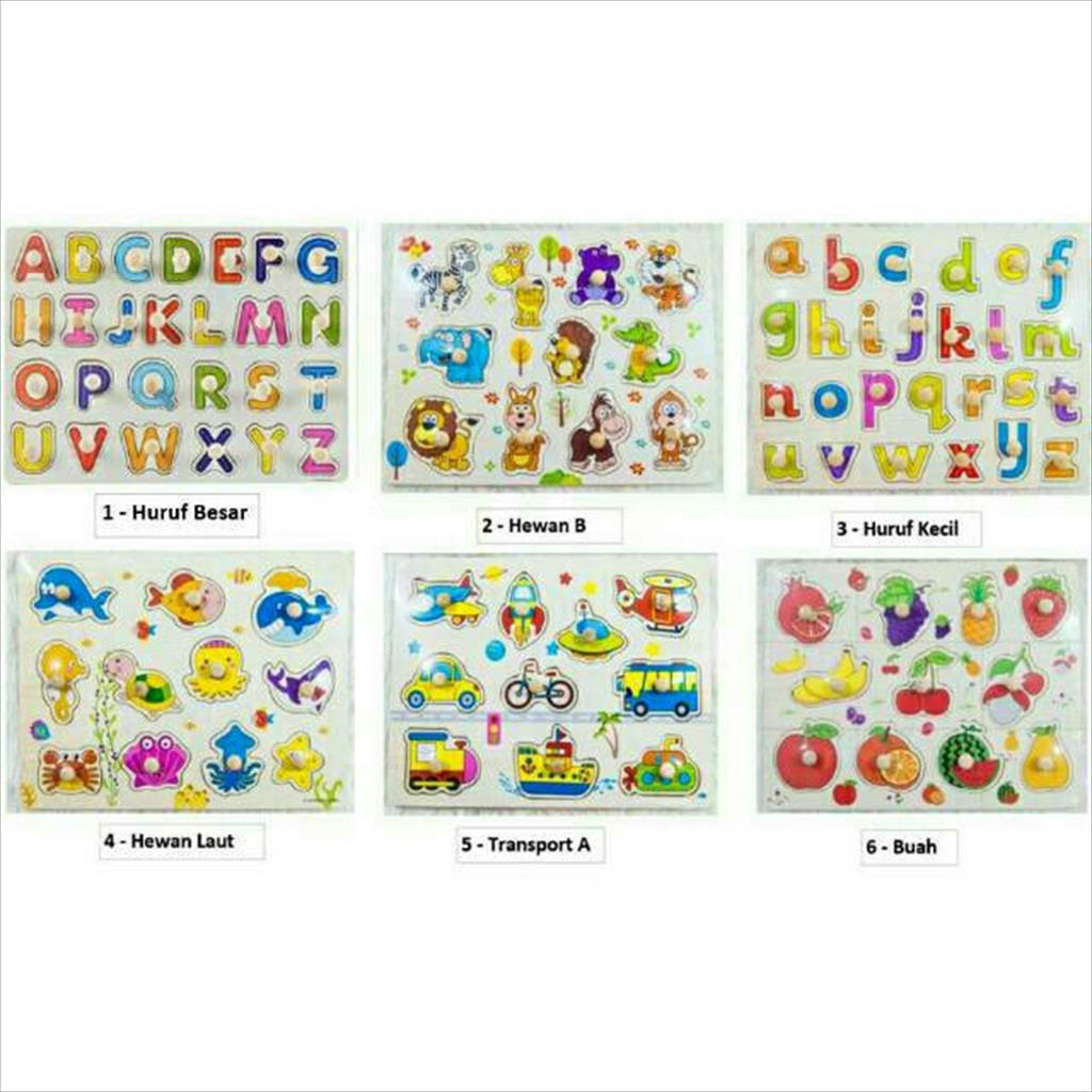 Hobi & Koleksi > Mainan & Games > Puzzle > YA 910 - Puzzle Kayu Knob Wooden Puzzle Angka Alfabet Hewan Buah Transportasi Jam Mainan Edukasi Anak Batita Balita Toddler