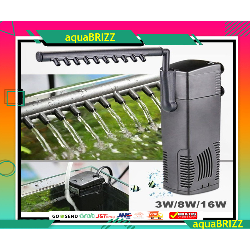 Pompa ini dapat melakukan tiga fungsi sekaligus, yaitu: sebagai filter, memompa air dan menghasilkan udara. Sehingga anda tidak perlu membeli aerator dan sebagainya.
