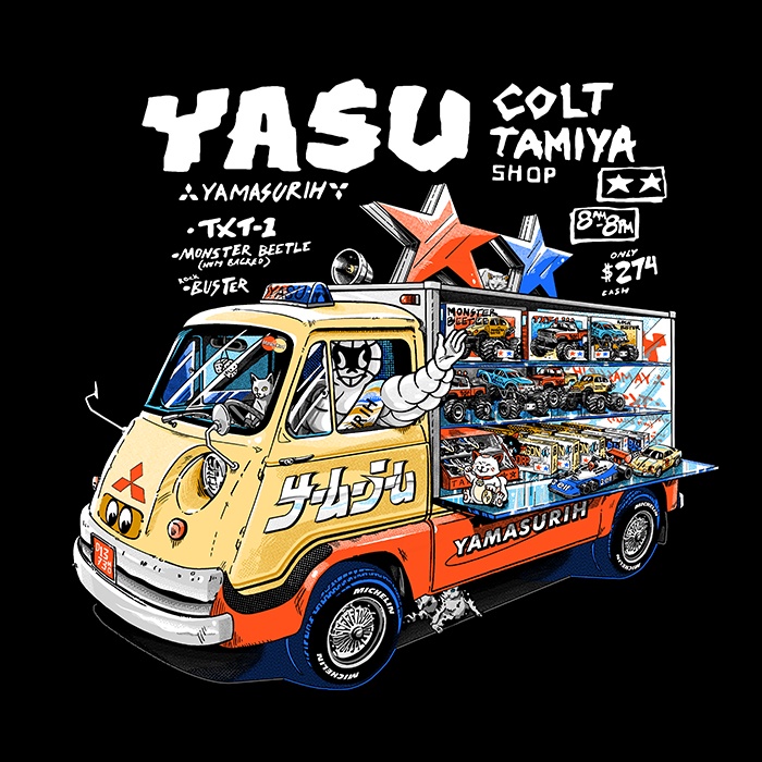 Detail Yamasurih - Kaos Hitam "Yasu Mitsu" Boxy T-Shirt