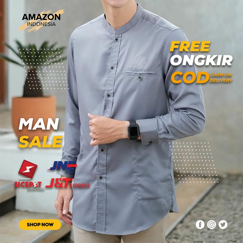 Fashion Muslim > Pakaian Muslim Pria > Atasan > YANG LAGI HITS DICARI GAN Termurah Koko Kemeja Atasan Arto Man Pria Cowok Warna Grey Kemeja Pria Cowo Kantor Kasual Formal Lengan Panjang