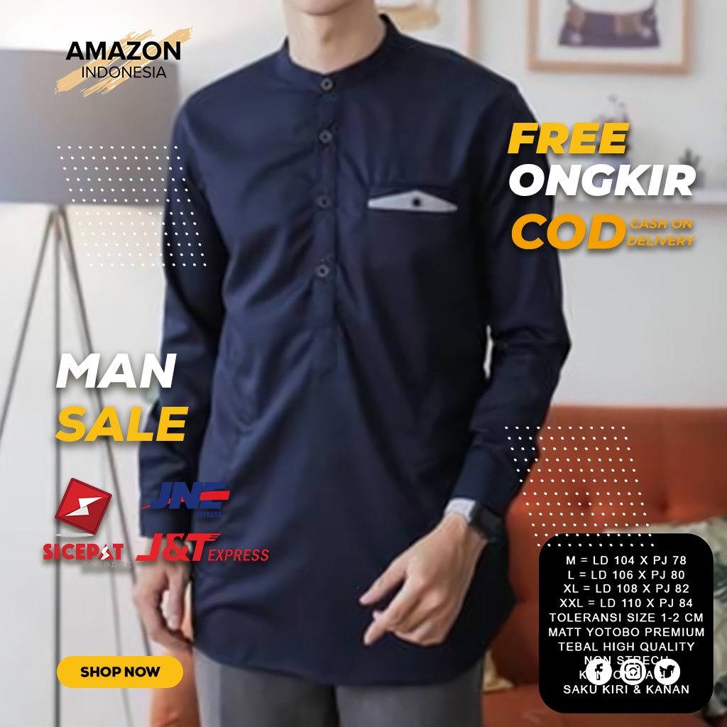Fashion Muslim > Pakaian Muslim Pria > Atasan > YANG LAGI HITS DICARI GAN Termurah Koko Alzy Man Warna Navy Kemeja Pria Cowok Kantor Kasual Formal Lengan Panjang