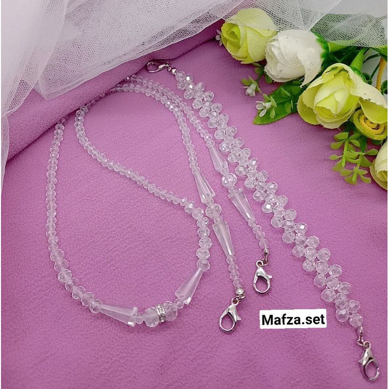 Detail YASAFA Strapmask Konektor Mafza Set sepasang kalung masker full kristal ceko
