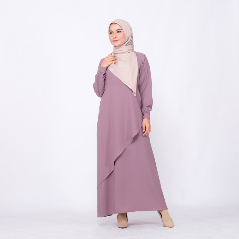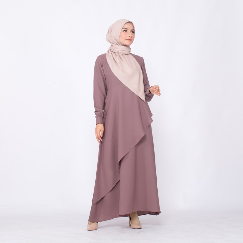 Detail YASMIN DRESS WOLLYCREPE GAMIS LAYER DEPAN BUSUI FRIENDLY DRESS KONDANGAN by hawacorner