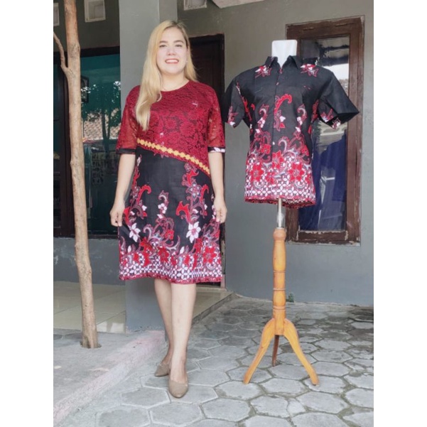 Detail YBB COUPLE BATIK KATUN HITAM MAROON REALPICT