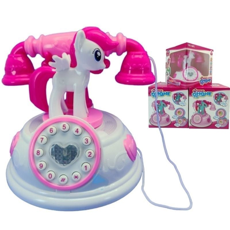 Mainan telephone musik bentuk antik ada lampu warna warni dan musik suara , disertai dengan kuda poni yang lucu ditengahnya.