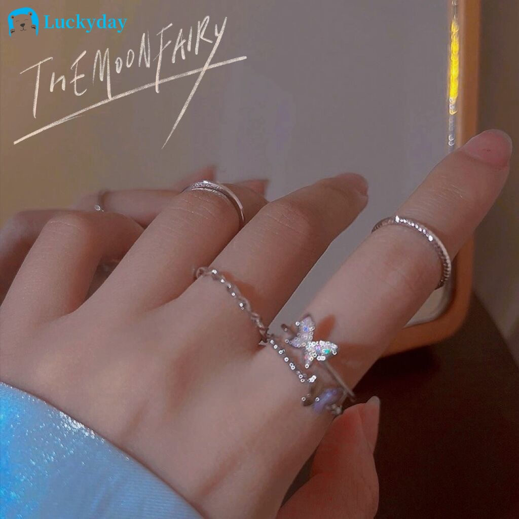 Aksesoris Fashion > Cincin > YEEZII 4pcs / Set Fashion Pearl Ring Set Simple Butterfly Heart Rings Crystal Adjustable Opening Gold Silver Ring for Women Accessories Jewelry