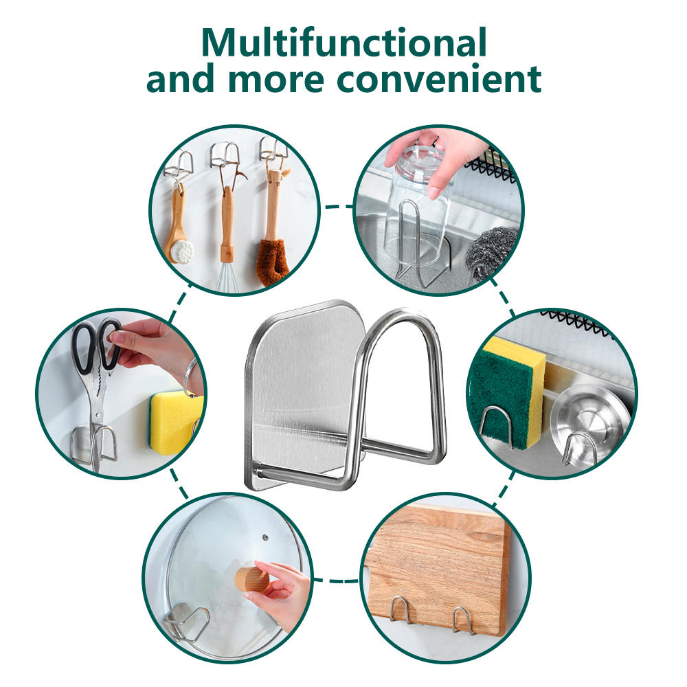Fitur Gantung Barang Hemat Ruang Rapikan seluruh peralatan dapur tanpa menambah rak penyimpanan. Gantungan dapur stainless steel ini siap digunakan untuk menempatkan spons cuci piring, centong sayur, spatula, dan peralatan dapur lainnya. Dapur yang rapi kini bukan impian lagi.