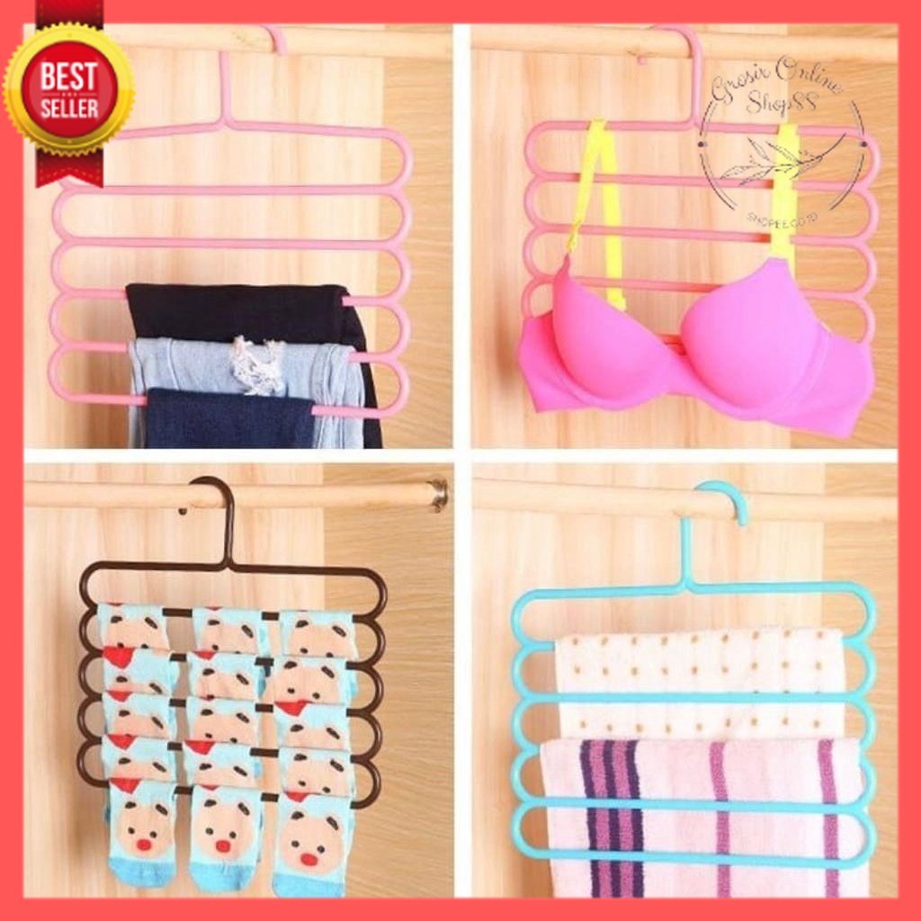 Pusing dengan baju yang sudah tidak muat lagi di lemari ? Solusi hanya dengan hanger 5 in 1, tidak memakan banyak tempat bila digantung. Lemari tidak lagi kepenuhan, dan kamu mudah mencari baju yang ingin kamu pakai!Ideal banget untuk yang punya lemari kecil. Juga bisa untuk menggantung tas, ikat pinggang dan lainnya.