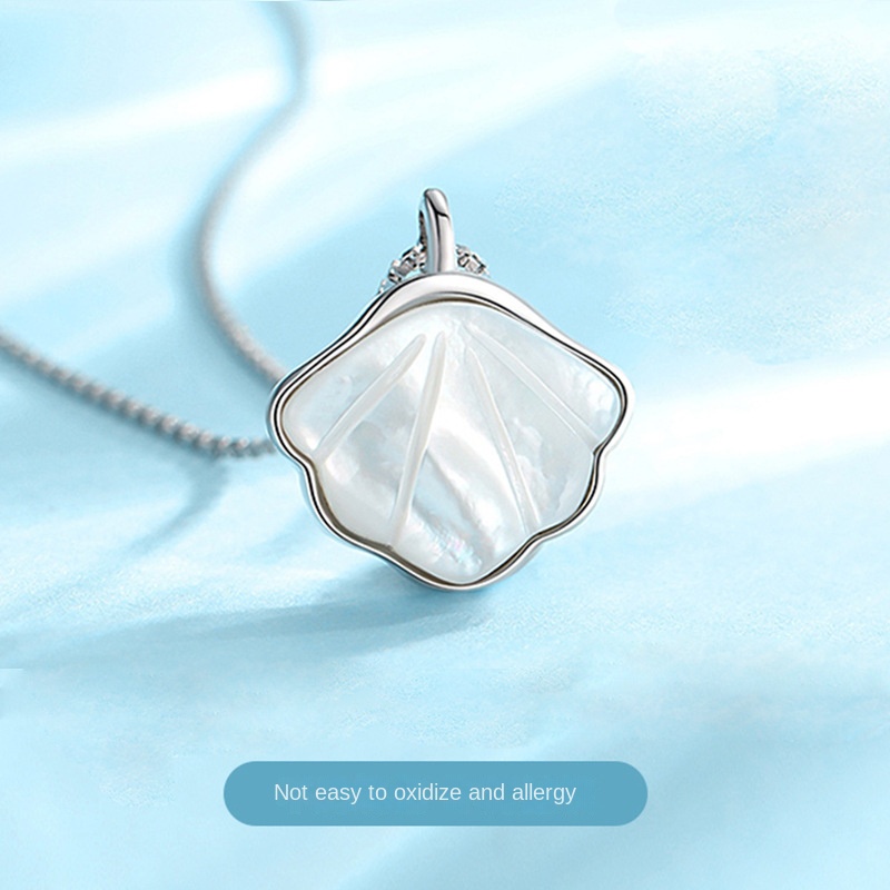 Aksesoris Fashion > Kalung > Liontin > Yibeizi Kalung Perempuan S925 Sterling Silver Versi Korea ins All-Match Niche Klavikula Rantai Putih Fritillary Liontin Shell Perhiasan