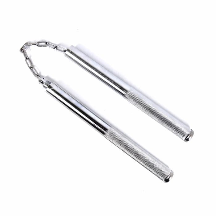 Nunchaku yang terbuat dari bahan logam (stainless) dan tahan banting, awet, dapat di sambung menjadi tongkat pemukul - Panjang 27 cm untuk masing-masing gagang - Panjang Nunchaku ketika digabung 54 cm - Diameter Stick 2,5 cm - 2 gagang stick yang digabungkan dengan rantai. - Nunchaku tidak terlalu berat sehingga nyaman dibawa kemana-mana - Fungsi : Seni bela diri, pertahanan diri