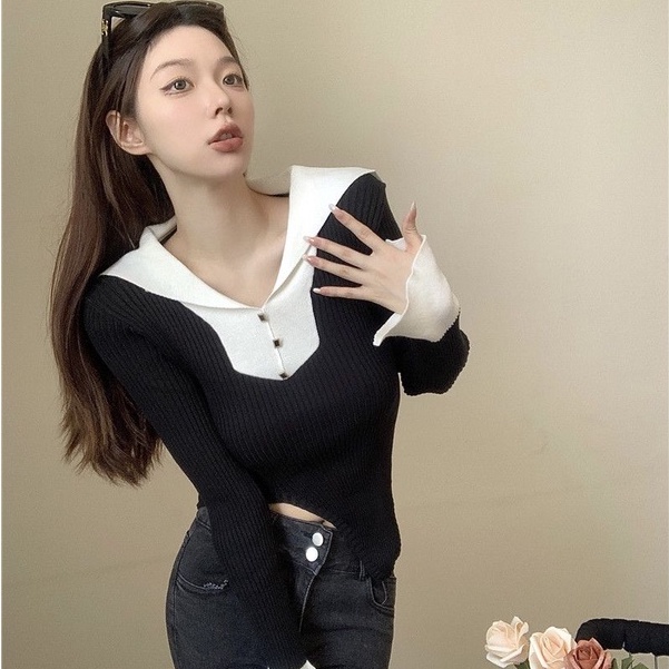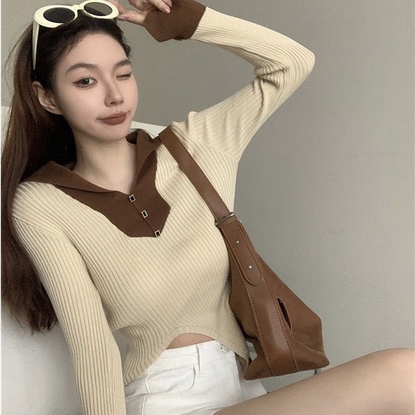 Detail YIU YIU Rajut - Knitwear Top Polos Wanita Lengan Panjang Premium
