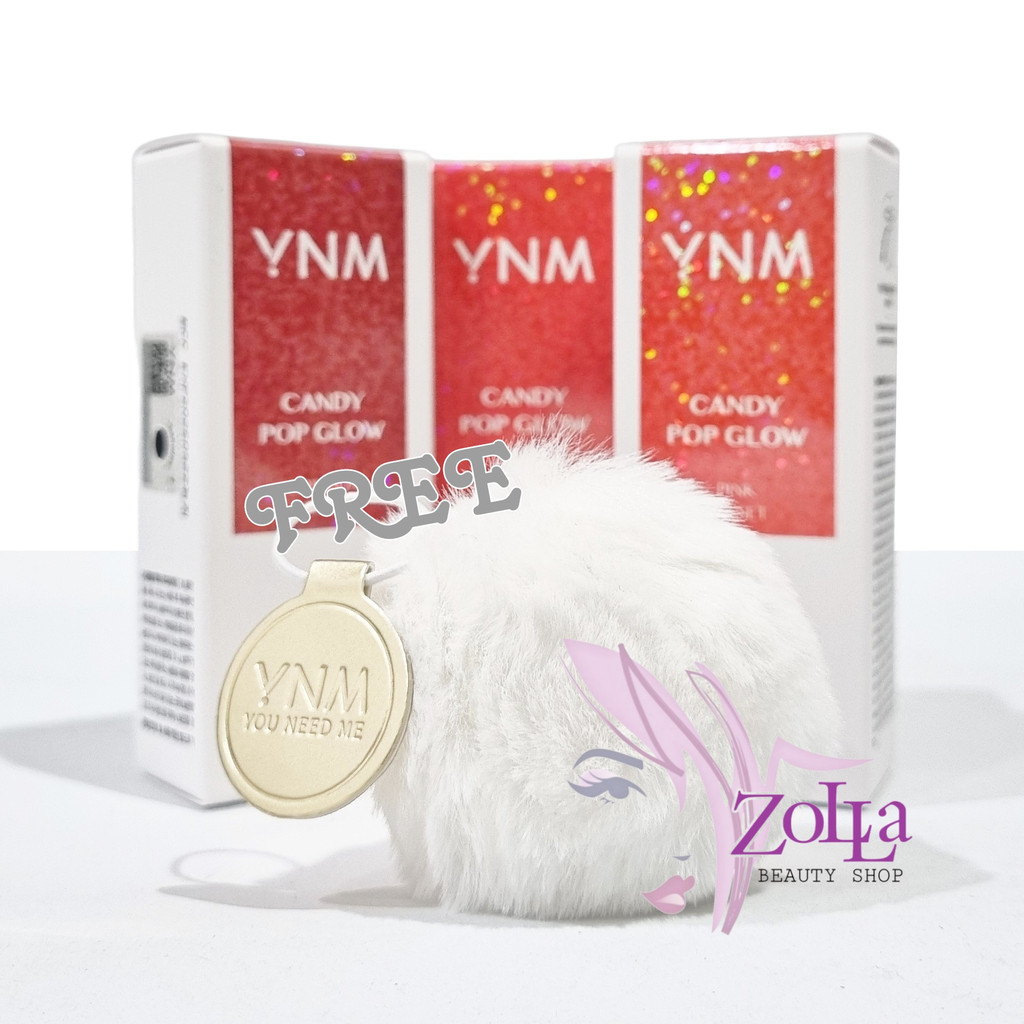 YNM Candy Pop Glow hadir dalam 3 shade: - Coral Moment Warna coral yang disukai banyak orang - Crimson Chili Perpaduan warna merah cabai dengan merah bata - Pink Sunset Memberikan efek bibir segar, sehat, pink alami