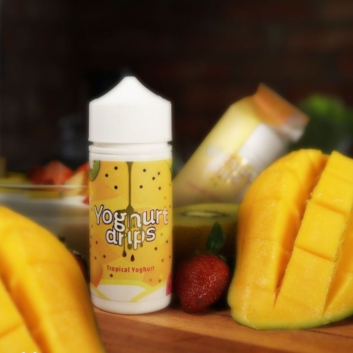 Flavour : Tropical Yoghurt Perpaduan segarnya yoghurt khas Yoghurt Drips membalut buah mangga yang menyegarkan dengan hint kiwi dan strawberry sebagai pelengkap untuk menciptakan ledakan sensasi tropis di setiap hisapannya. Nicotine : 3/6MG Volume : 60ML PG/VG : 40/60