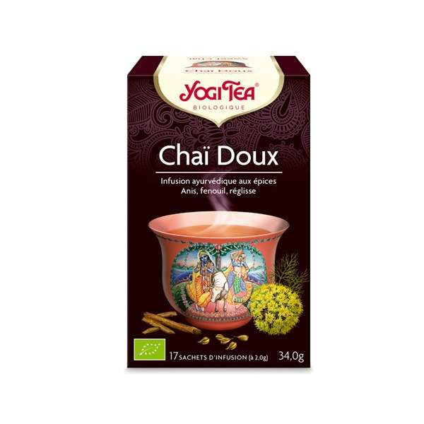 YOGI TEA® Sweet Chai: gentle, soft and with a finely balanced spiciness of black pepper and ginger, the flavour of aniseed, fennel and spices provides feelings of comfort, satisfaction and confidence.