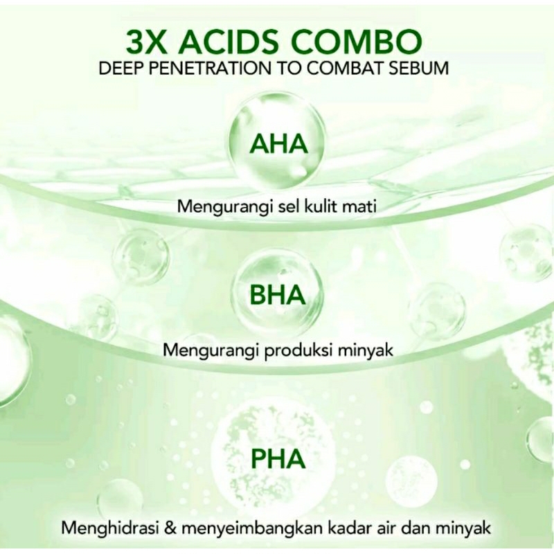 Essence yang dapat membantu mengeksfoliasi sel kulit mati, membersihkan pori-pori dan membantu mengontrol minyak, dengan kandungan