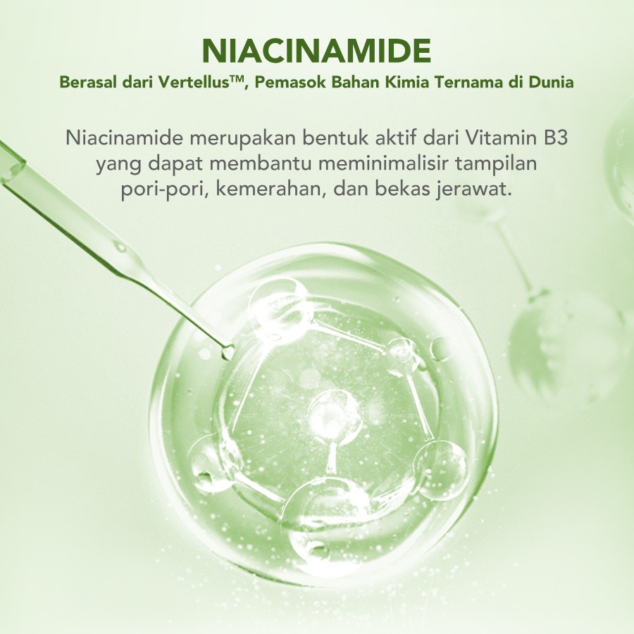 Ingredients utama dan manfaat - Centella Asiatica Extract: Menenangkan kulit, meredakan peradangan, dan anti-bakteri. - Panthenol (Vit B5): Membantu mempercepat proses penyembuhan dan menyempurnakan tekstur kulit. - Niacinamide: Oil-control dan menyamarkan tampilan pori-pori - Galla Rhois Gallnut Extract: Anti-bakteri, anti-inflamasi, membantu mencegah dan menyamarkan bekas luka dan jerawat. - Herbal Fusion Actives: Meredakan inflamasi dan memperbaiki lapisan pelindung kulit.