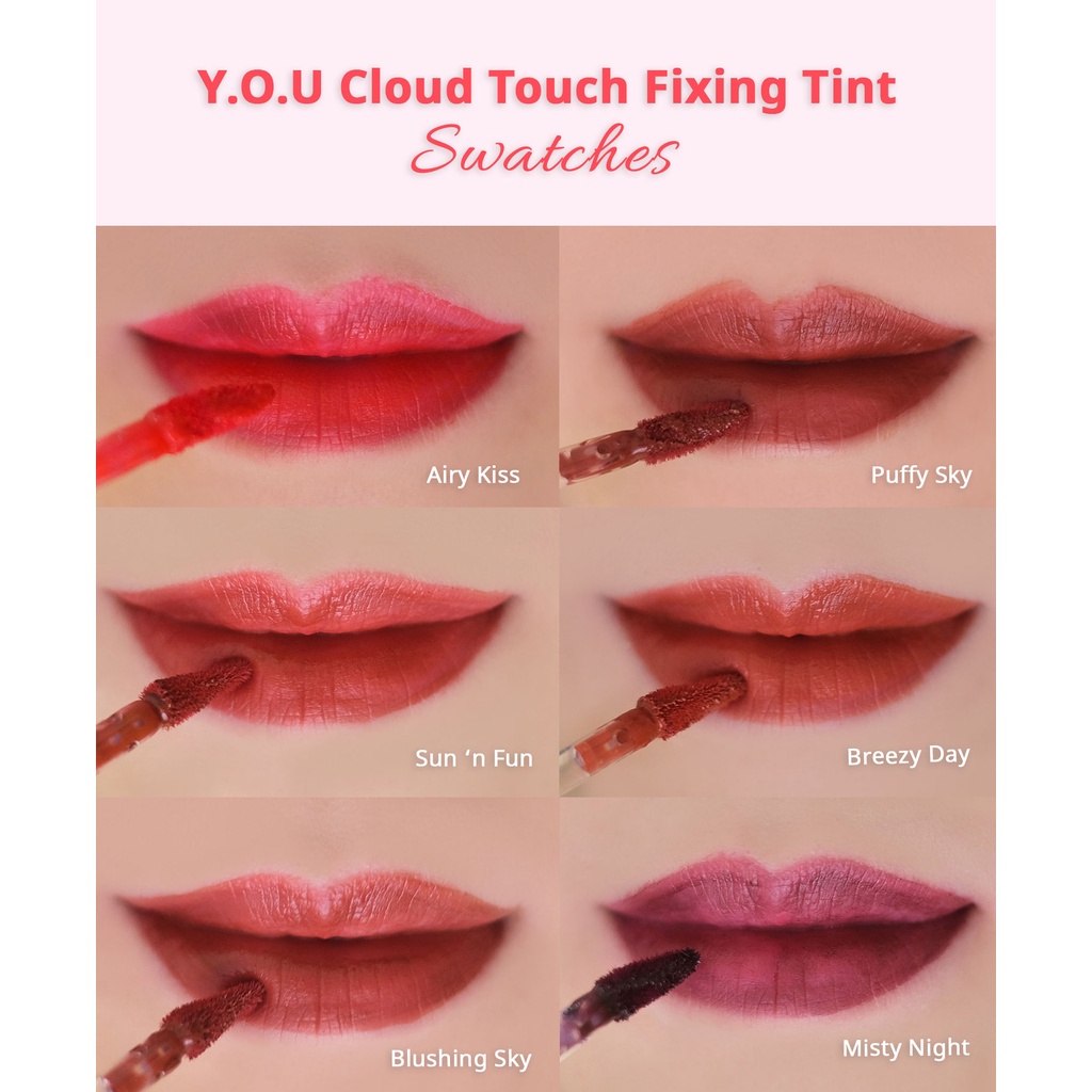 YOU Cloud Touch Fixing Tint adalah lip tint ringan dengan kandungan Ceramide yang berfungsi untuk menjaga kelembapan dan mencegah bibir kering. Formula menutrisi yang low transfer memberikan warna matte tahan lama, bukan hanya untuk lip look yang cantik namun sekaligus daily lip care kamu.