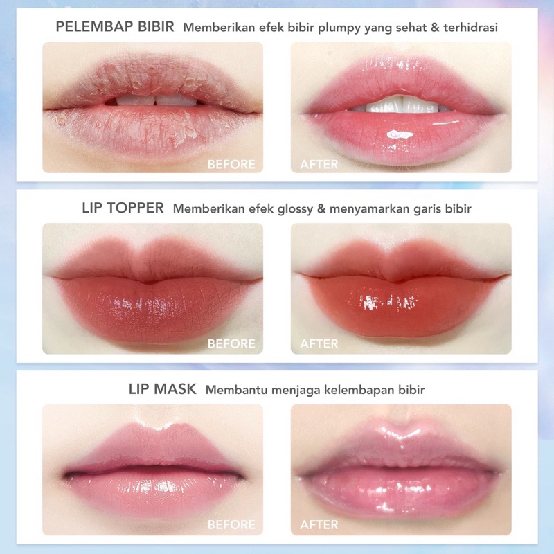 Tekstur gel dengan kandungan Hyaluronic Acid untuk membantu menjaga bibir tetap terhidrasi