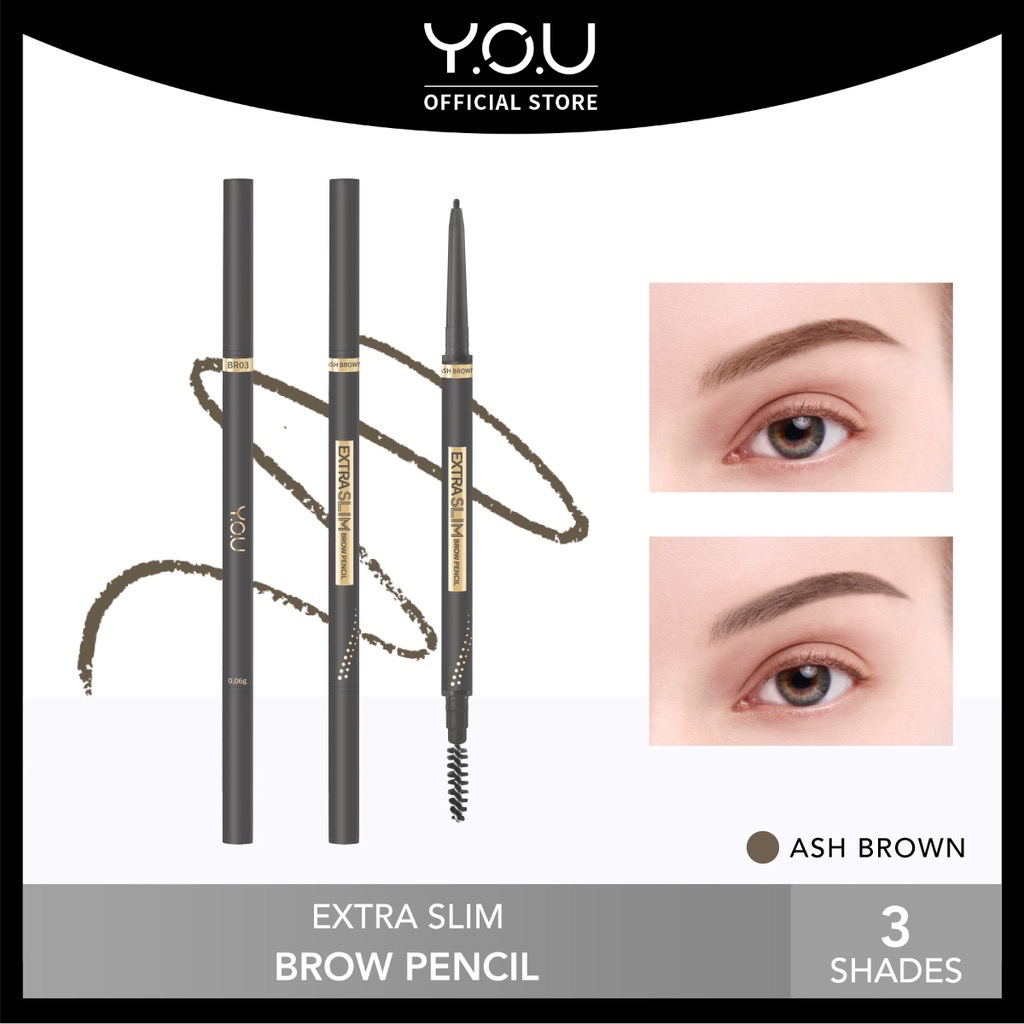 Detail YOU Extra Slim Eyebrow Pencil Indonesia / Pensil Alis 0.06g / 1.5mm Tip Dual-End Brow Pencil / Camellia Extract Fluffy Effect / Long Lasting Waterproof Tahan Lama Anti Air / Dark Brown Chocolate Ash Brown Black Coklat / Cosmetic Eye Make Up / Y.O.U Series
