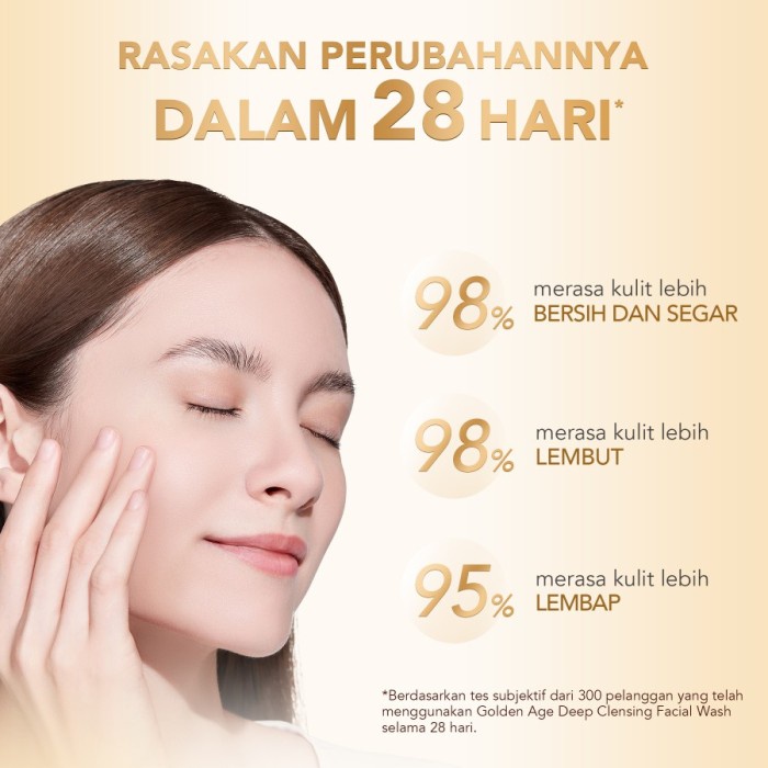 Cara Pemakaian: Aplikasikan secara merata pada seluruh wajah setelah penggunaan facial wash. Tidak lupa untuk diaplikasikan pada bagian leher dan tunggu hingga produk meresap. Dapat menggunakan rangkaian produk Golden Age untuk hasil yang lebih maksimal.