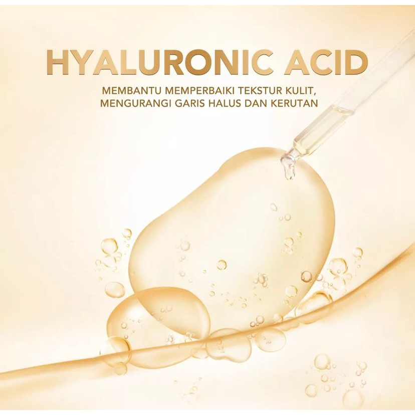 Punica Granatum Extract: Ekstrak Pomegranate (buah delima), membantu mencegah tanda-tanda penuaan dan memperbaiki kondisi kulit akibat penuaan Sodium Hyaluronate/Hyaluronic Acid: Membantu menghidrasi, memperbaiki tekstur kulit, dan mengurangi garis halus dan kerutan Agave Tequilana Leaf Extract: Ekstrak daun agave biru yang membantu mencegah penuaan dan meningkatkan kelembapan alami kulit Jojoba Seed Oil: Mencegah iritasi dan menenangkan kulit Achillea Millefolium Extract: Ekstrak daun seribu yang mencegah munculnya kerutan/keriput dan memperbaiki tekstur kulit