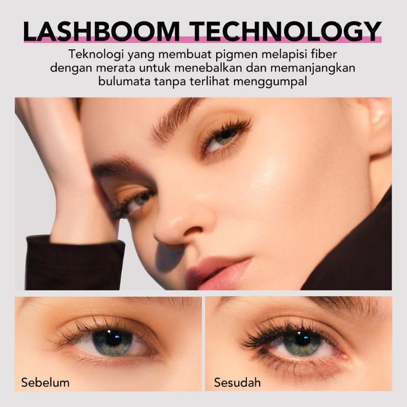 selling Points: 1. 5x The Volume Dengan Innovative Lashboom Technology yang memberikan ketebalan 5x untuk tampilan mata yang memikat 2. 24H Long Lastin Mengandung Microcrystalline Wax yang dapat melapisi ke bulu mata Anda dan menjaga kelentikkan hingga 24 jam 3. Waterproof & Sweatproof Film-forming Formula dari Jerman yang memberikan kenyamanan pada bulu mata Anda, serta Waterproof dan Sweatproof.