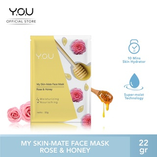 2. Y.O.U My Skin-Mate Face Mask [Rose & Honey] diperkaya dengan Rose Water, Honey Extract, dan Sodium Hyaluronate yang membantu melembapkan dan menutrisi kulit, sehingga wajah terasa lebih kenyal dan bercahaya.