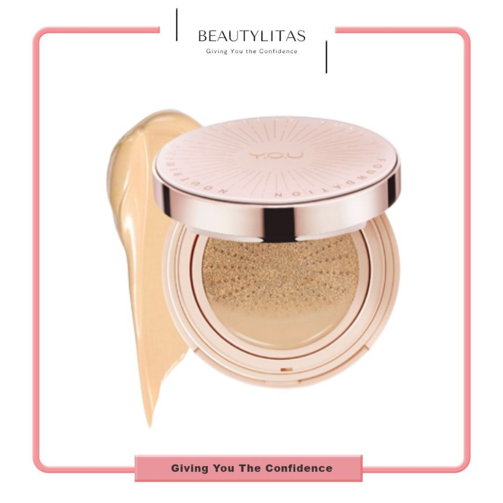 YOU NoutriWear+ Flawless Cushion Foundation mengandung Immortelle C-lock Essence & Innovative Litestay™️ technology yang membantu menutrisi kulit, lengkap dengan Korean Rubycell Puff untuk membantu aplikasi produk.