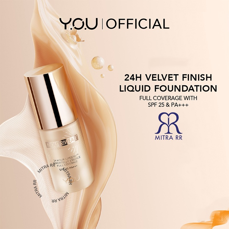 Detail YOU Noutriwear + Velvet Liquid Foundation SPF|Alas Bedak Tahan Lama 24 Jam Full Coverage