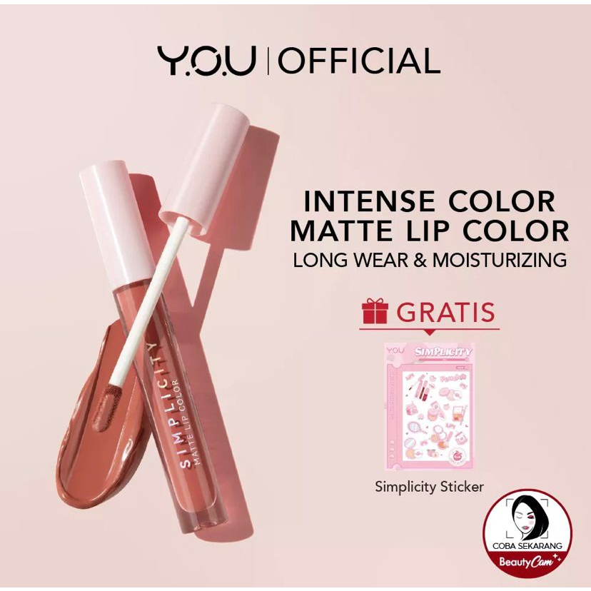 YOU Simplicity Matte Lip Color bertekstur lembut dan tahan sepanjang hari dengan pigmentasi tinggi dan aplikator runcing untuk hasil yang lebih maksimal.