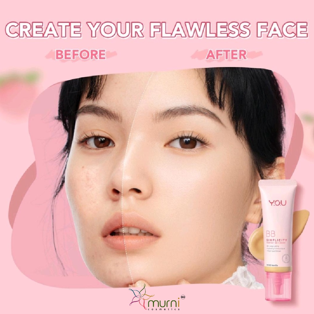 YOU Simplicity Perfect BB Cream memberikan tampilan wajah lembut dengan hasil akhir semi-matte sekaligus membantu melembapkan dan meratakan warna kulit.